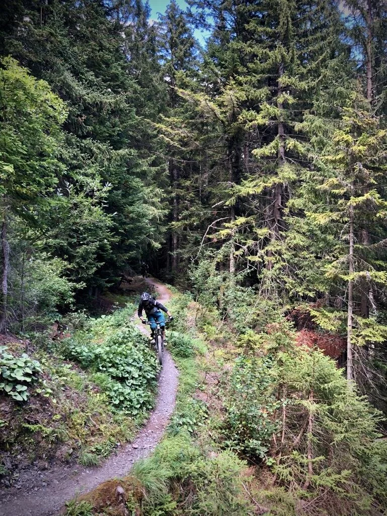 Leaving the loose rocky tech behind us we entered the high alpine pasture, which is less steep and a lot more flowy and fun. The beautiful Barrage de Tesuzier lies ahead and then s the fun really begins.